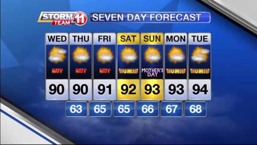 We have officially made it to 90, and we will remain there through the week with the mid 90s looming.